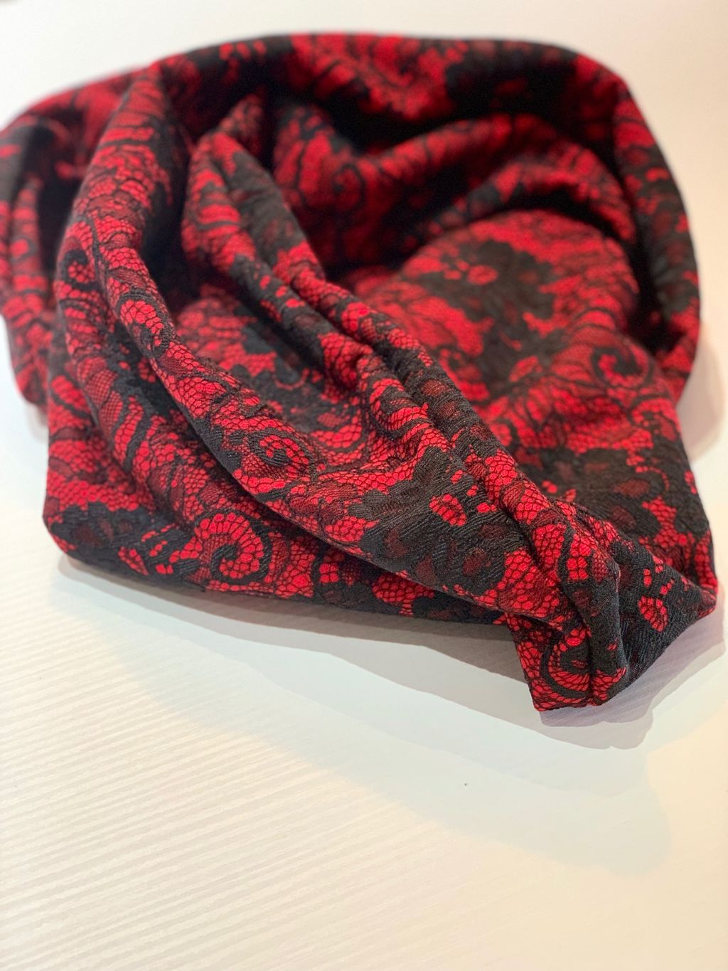 Sciarpa rossa in pile e pizzo